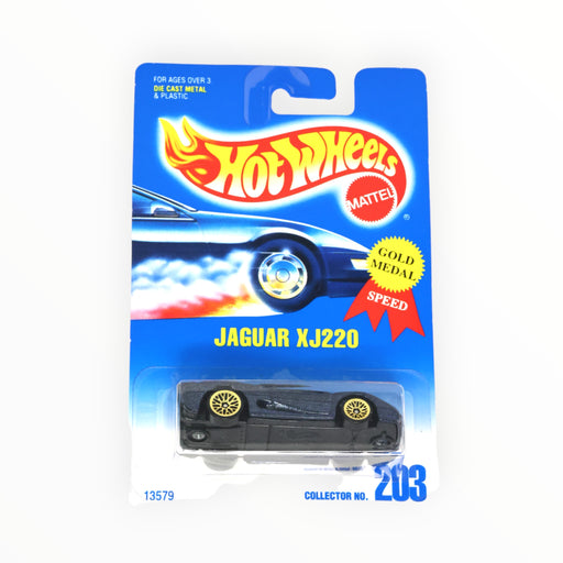 1995 Mainline - Gold Medal SpeedIn stockJaguar XJ220Hot Wheels 13579(1995) Mainline #203 - Gold Medal SpeedDark BlueWSP'sBlack Interior